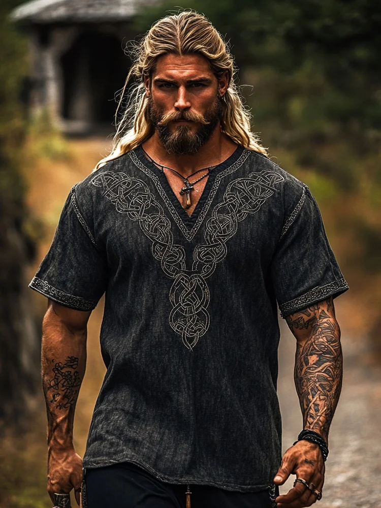 Men's Viking Celtic Knot Art Linen Blend Shirt