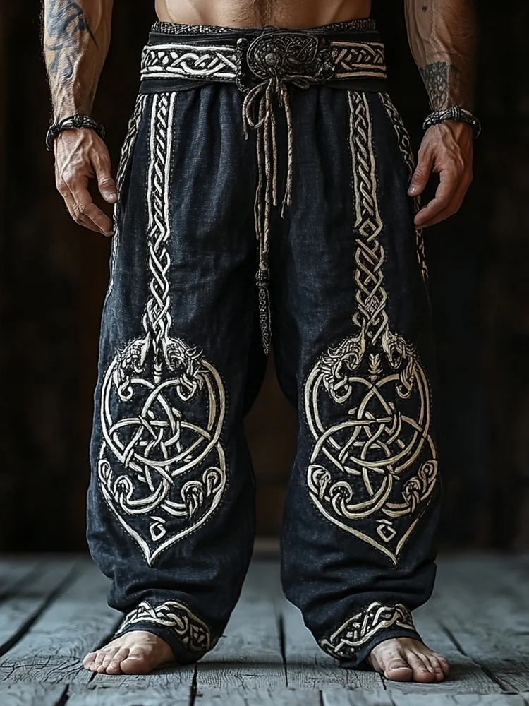 Men's Vintage Viking Celtic Knot Art Linen Pants