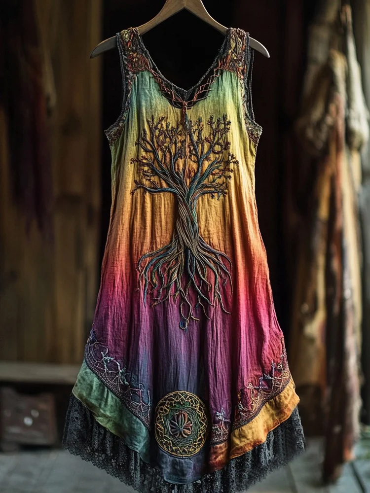 Vintage Life Of Tree Celtic Multicolour Tribal Art Comfy Tank Dress